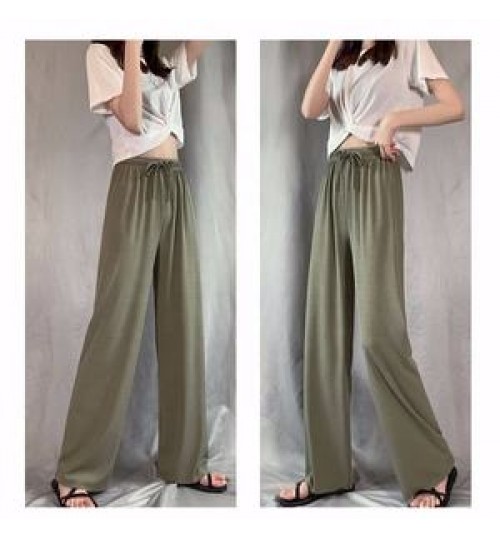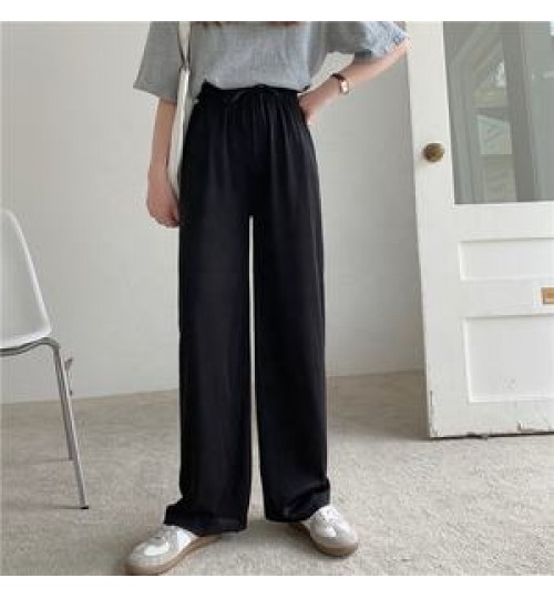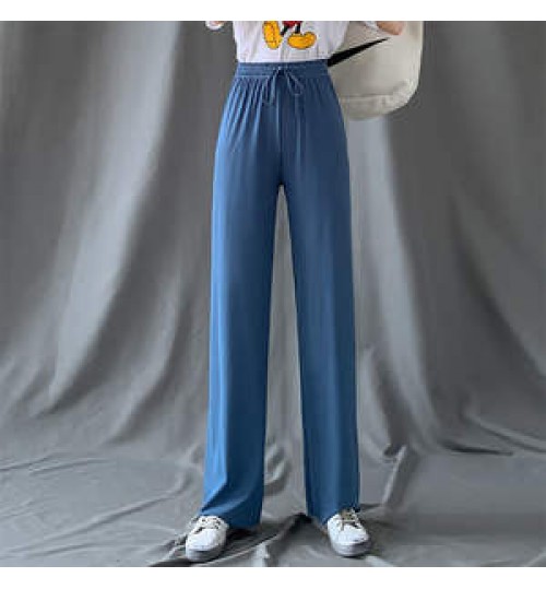 New Silk Wide-leg Pants Women Summer Ladies High Waist Loose Large Size Nine-point Pants Straight Casual Pants