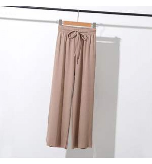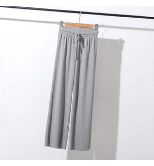 Women Summer Drawstring Wide Leg High Elastic Waist Pants Solid Color Cheap Price Hot Sale Fashion Women Ice Silk Casual Pants
