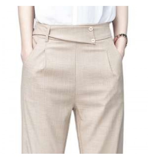 cotton and linen fashion suit pants women's large size high waist loose small feet elastic harem casual pants women