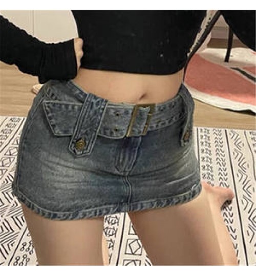High Waist Denim Jeans Skirts belt Summer Skirts Women Mini Short Skirts