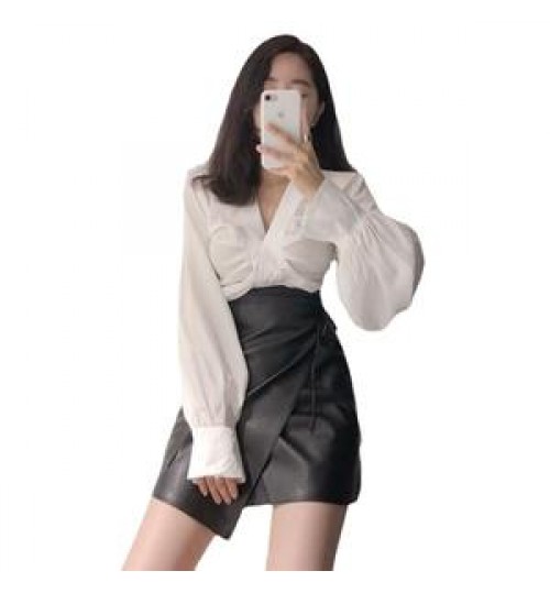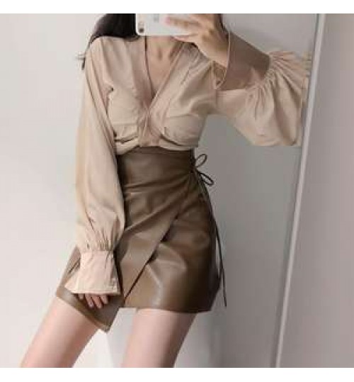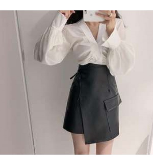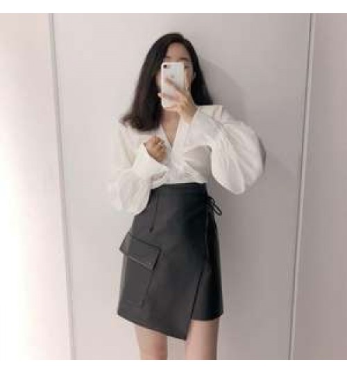 women's leather knee length girls short maxi chiffon skirts custom logo dress mini pagoda sleeve skirts