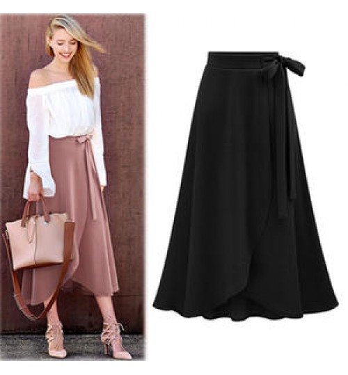 • JBeiL M-6xl Womens Slit Long Skirts Plus Size Ladies Jupe High Waist Bowtie Summer Slim Casual Asymmetric Skirt Saia Casual