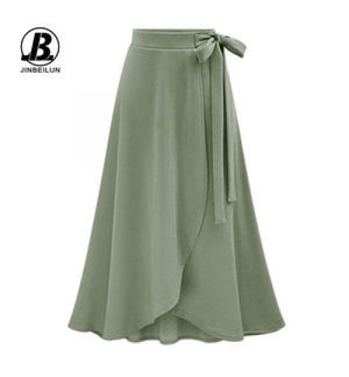 JBeiL M-6xl Womens Slit Long Skirts Plus Size Ladies Jupe High Waist Bowtie Summer Slim Casual Asymmetric Skirt Saia Casual