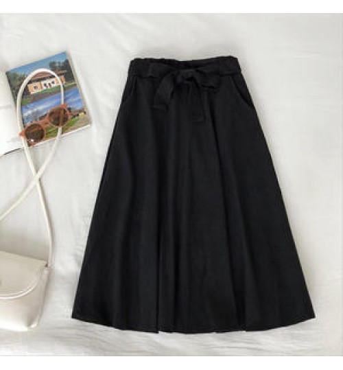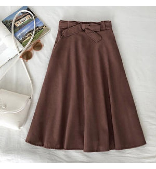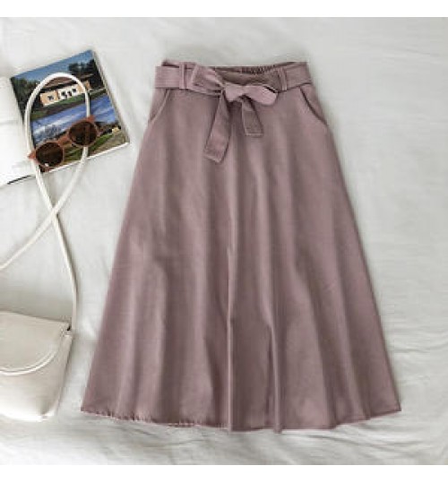 Wholesale 16 Colors Fashion Saias Faldas With Belt Skirt Ladies High Waist Casual Plain Long Midi Pleated Skirts Womens