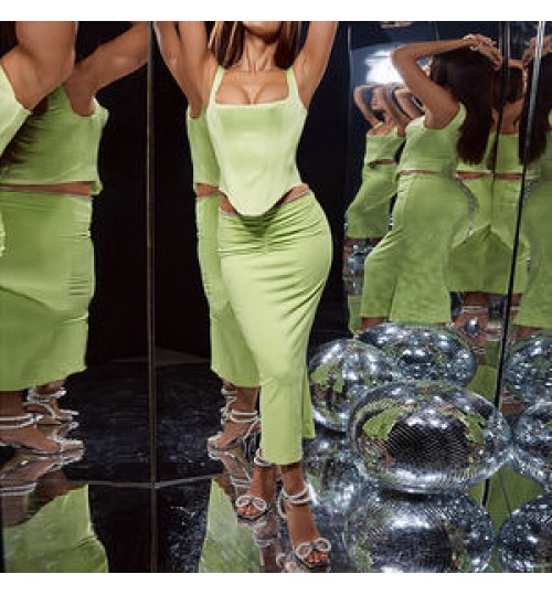 Source Factory Oem Women Clothing Lime Crystal Strap Midi Skirt