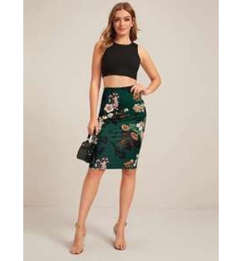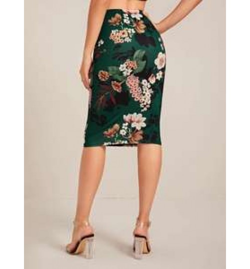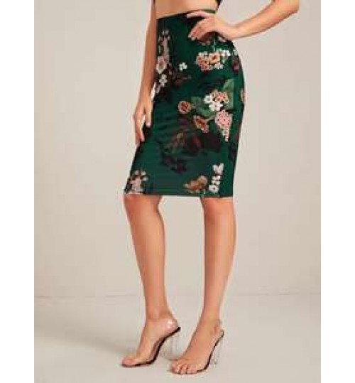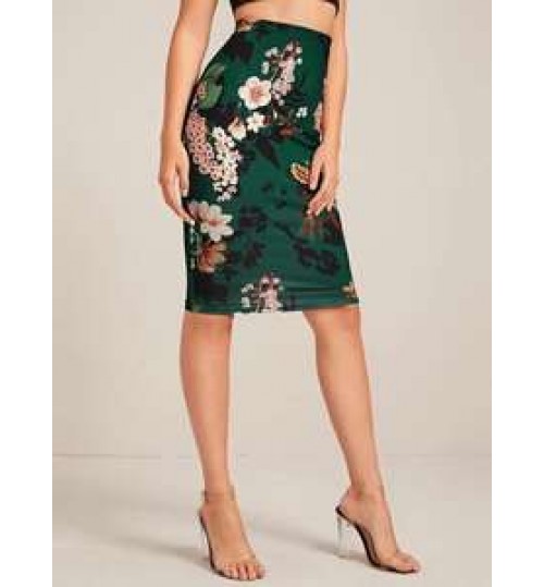 Women's Bodycon Pencil Skirt With Floral Color Hip-wrapped
