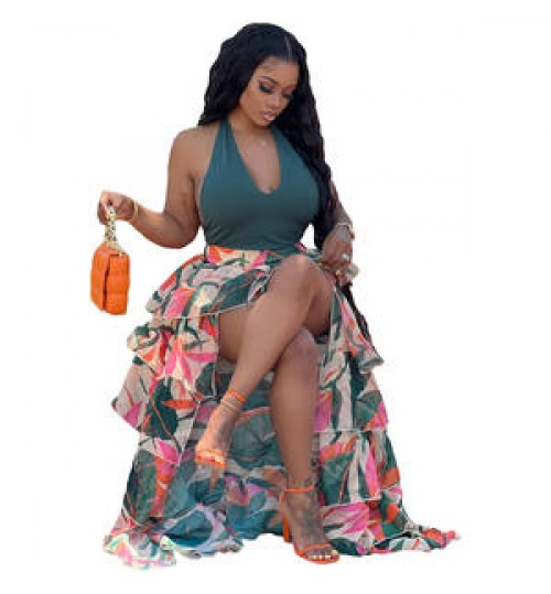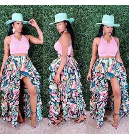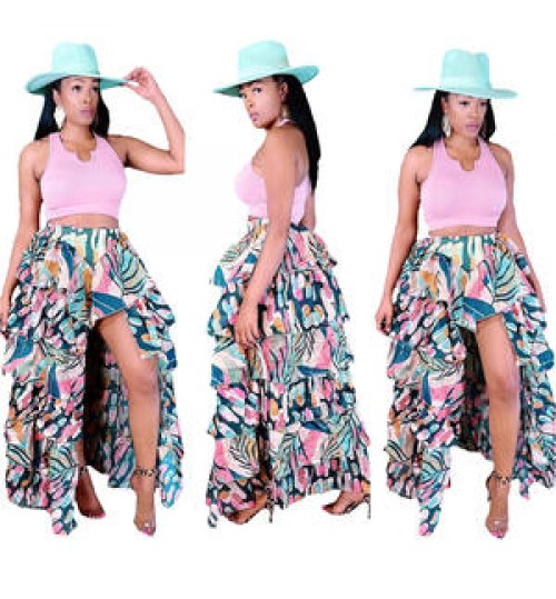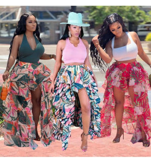 10%OFF S-XXL Women's Chiffon Print Patchwork Chiffon Print Patchwork Long Skirts Irregular Floral Skirts