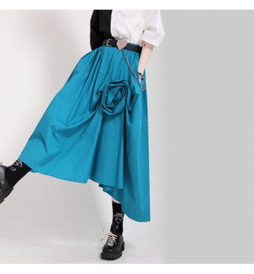 New Fashion Summer and Autumn Women's High Waist Pleated Solid Color Half Length Skirt Lady Irregular Skirt 1977