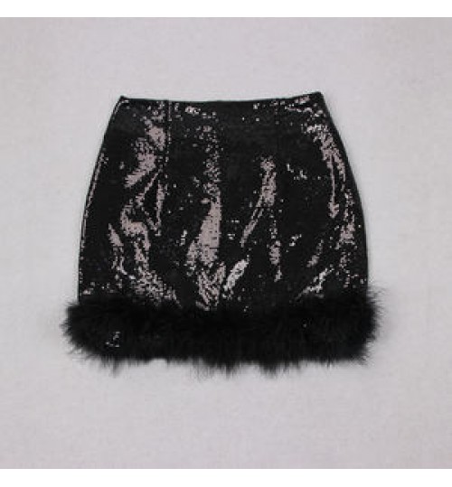 Product name | Women Sequined Skirts Black Club Shiny Wear Mini Party Skirt with Feathers |