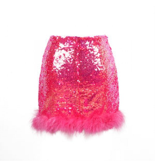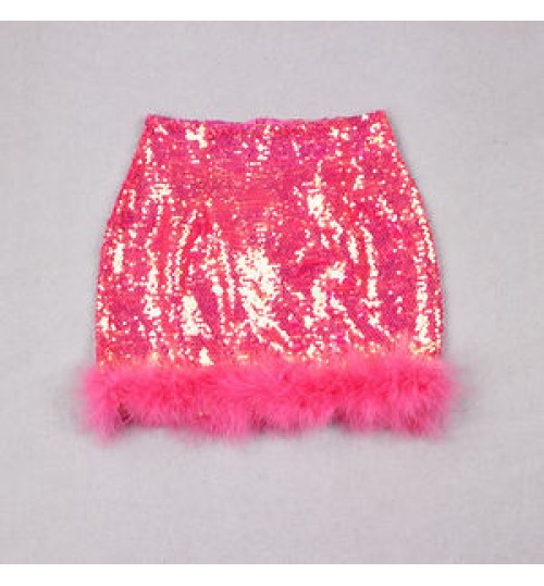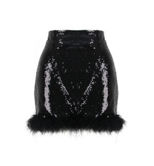 Women Sequined Skirts Black Club Shiny Wear Mini Party Skirt with Feathers