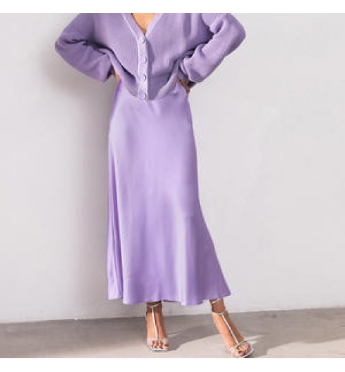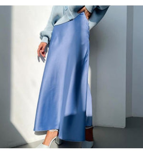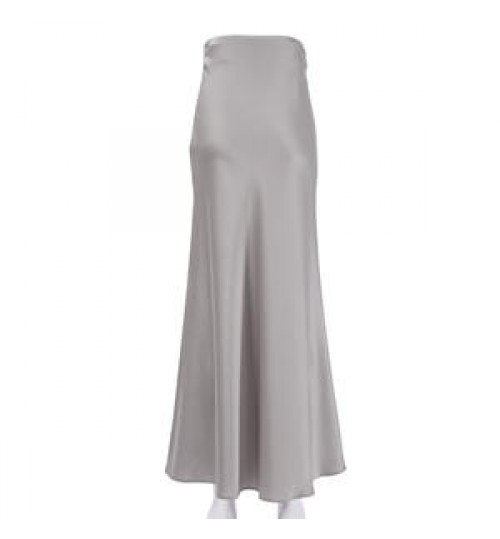 Cheap Solid Elegant Mid-length Fish Tail Casual Office Women's Elastic High Waist Satin A-line Skirt