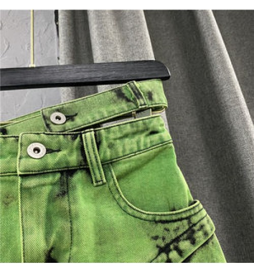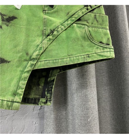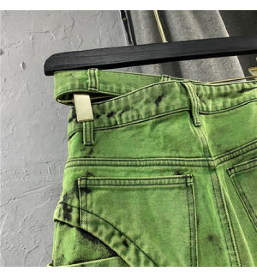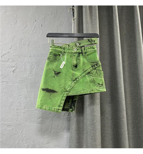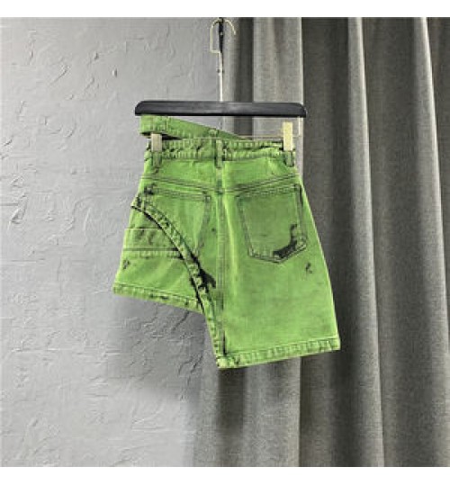 Summer New Fashion Women's Denim Skirt Personalized Double-Row Waist Irregular Mini Skirt Green Asymmetric Short Skirt