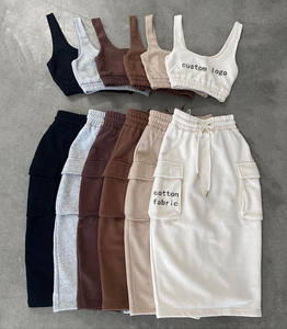 Cotton fabric custom logo high waist jogger cargo women skirt sets two piece outfits midi skirt top sets
