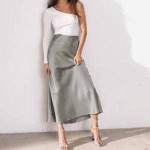 Cheap Solid Elegant Mid-length Fish Tail Casual Office Women's Elastic High Waist Satin A-line Skirt