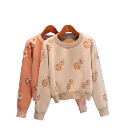 OEM custom fashion jacquard sweater knitwear women's crew-neck heart pattern knit sweater custom lady sweater