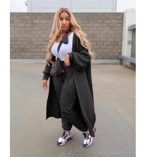 Women's Long Sleeve Casual Open Front Knit Winter Cardigan Plus Size Sweater
