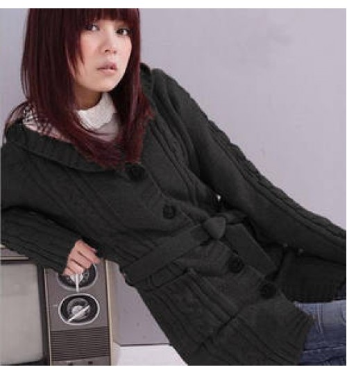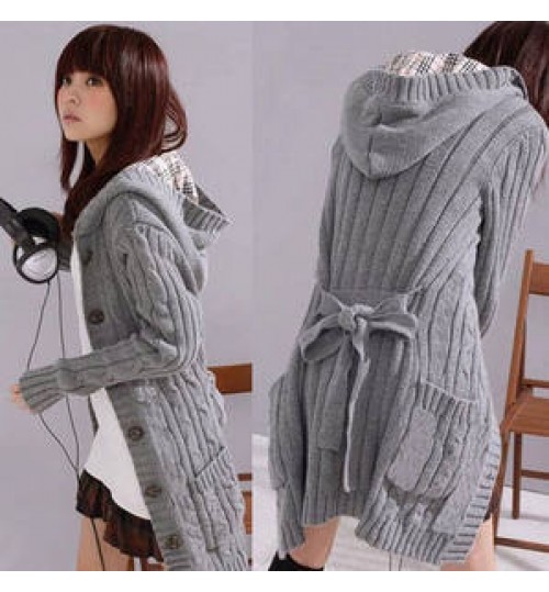 Casual Winter Knitted Hooded Belted Long Coat Cardigan Women's Sweaters