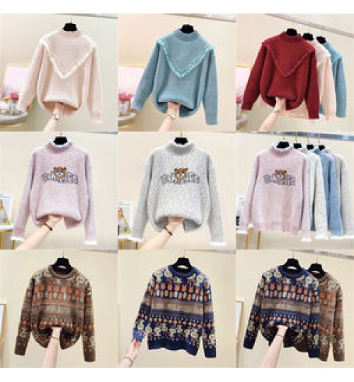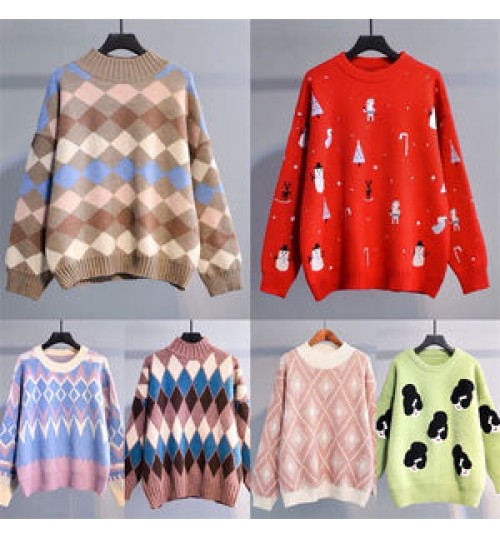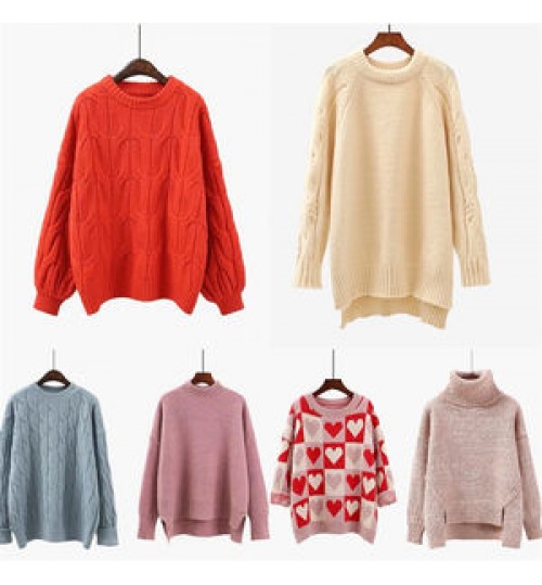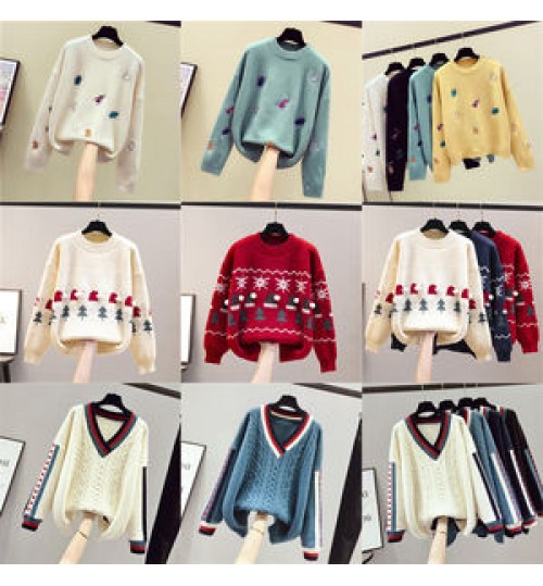 • Wholesale women's sweater fashion temperament commuter round neck pullover knitted stitching sweater