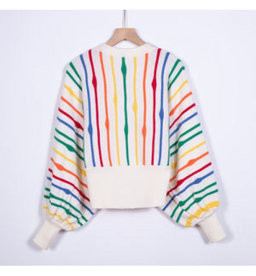 • Women's Clothing Autumn winter sweater loose intercolor crew neck striped fall Women's Sweaters