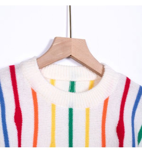 Women's Clothing Autumn winter sweater loose intercolor crew neck striped fall Women's Sweaters