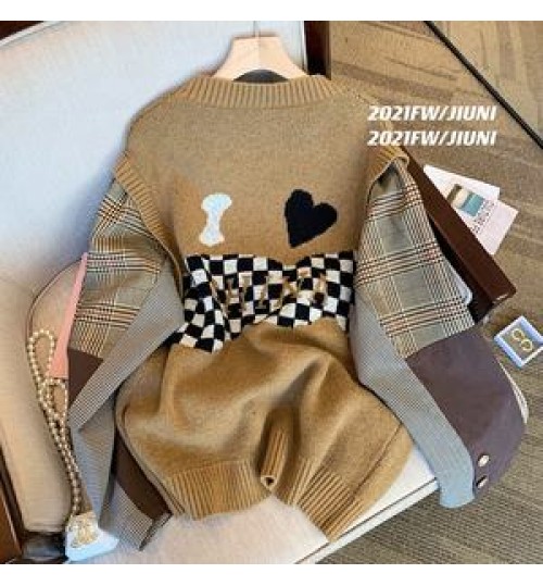 2022 spring new stitching cartoon sweater women's niche design loose lazy wind knitted top trendy