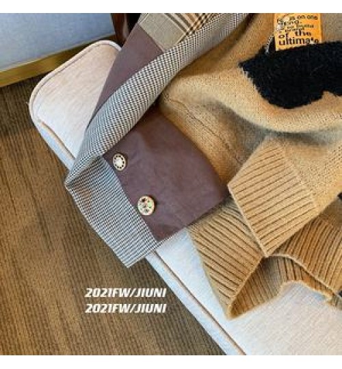 Product Name: | 2022 spring new stitching cartoon sweater women's niche design loose lazy wind knitted top trendy |