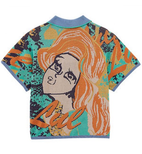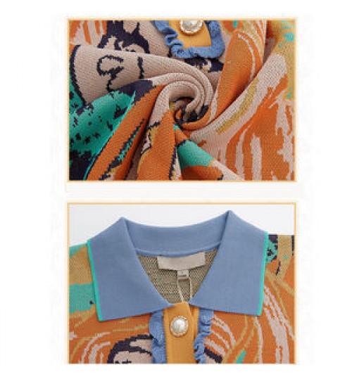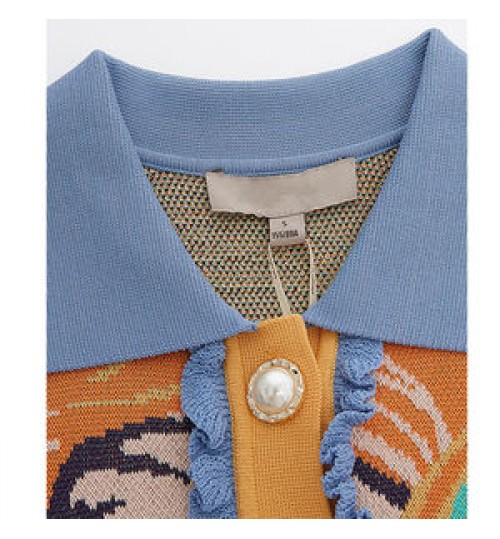 • OEM Custom Logo Fashionable Jacquard Ladies Knitwear Pullover Turn Down Collar Knit Jumper Top Women Sweater