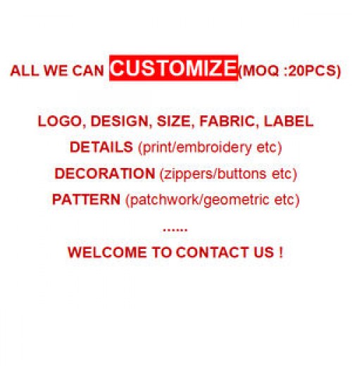 Fabric,Color, Size,Lable, Printing etc, All The Designs Are Welcome to Customize.