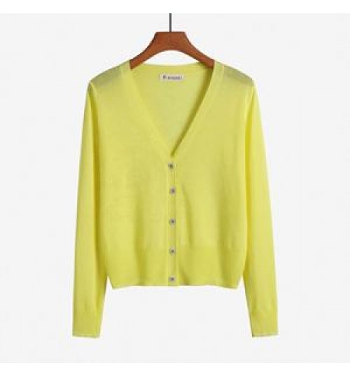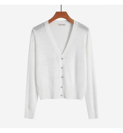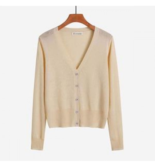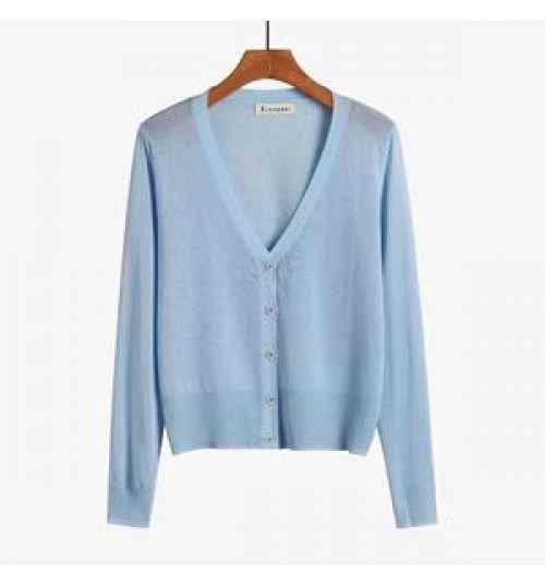 • Summer Wholesale Long-Sleeved Thin Coat Ice Silk Knitted V-Neck Women's Sweater Cardigan