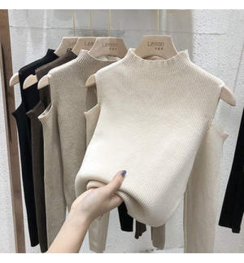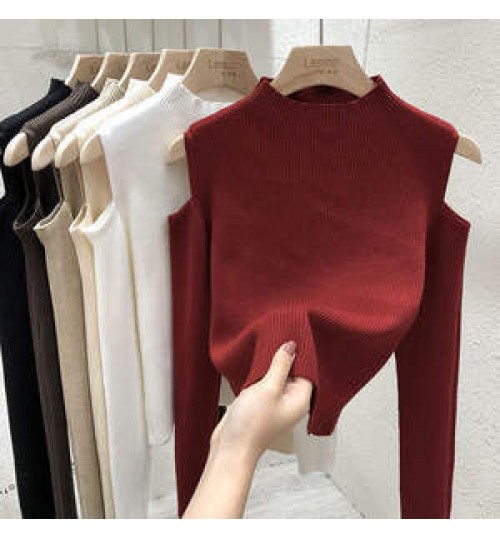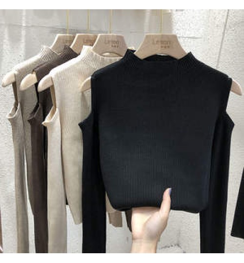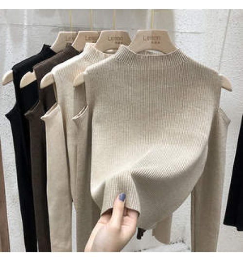 • 2022 New Fashion Women Winter Sweater Korean Solid Color off-the-shoulder long-sleeve top base shirt Sweater