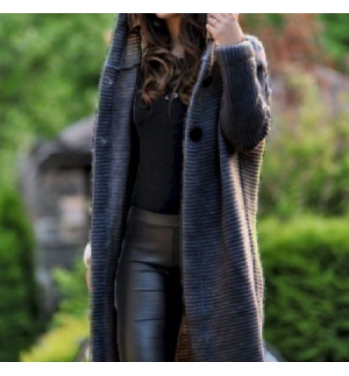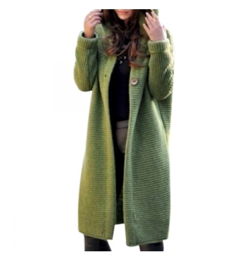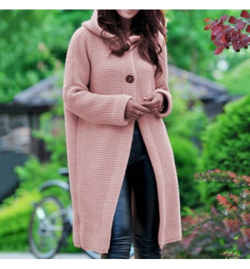 2022 fashion fall autumn winter knitted hooded long coat jacket ladies cardigan women's sweaters