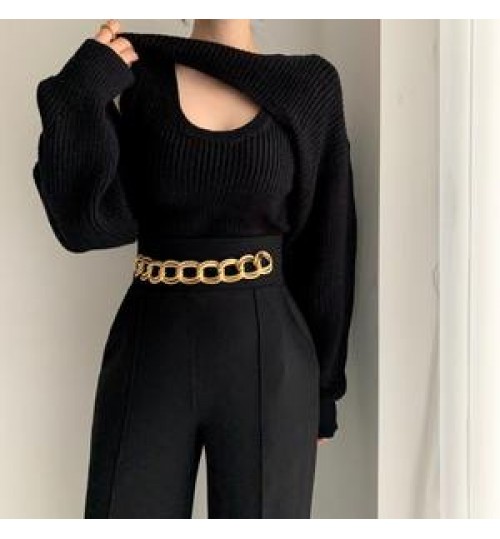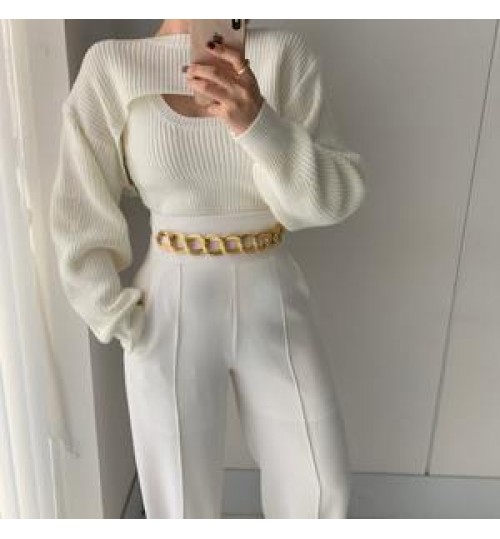 • Autumn gas knit sweater undershirt casual short sweater women two piece set