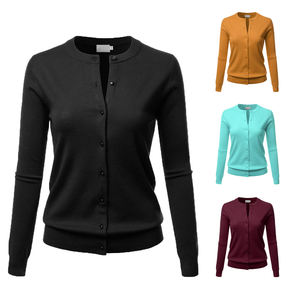 2023 Amazon Top Seller Long Sleeve Round Neck Button Plain Sweater Knitted Women Cardigan Knitwear Women's Sweaters