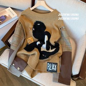 2022 spring new stitching cartoon sweater women's niche design loose lazy wind knitted top trendy