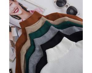 2021 High Quality Slim Elegant Pullover Style, Long Sleeve Half Turtleneck Women Stylish Knitted Ribs Black Sweater/