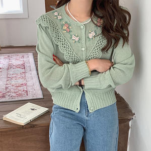 AOPU Embroidery sweater loose heavy hand-made vintage floral embroidered knitted sweater women cardigan sweaters