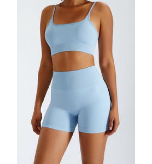 Custom LOGO Matching Nylon Yoga Workout Short Tights Ribbed Seamless Gym Biker Women's Shorts