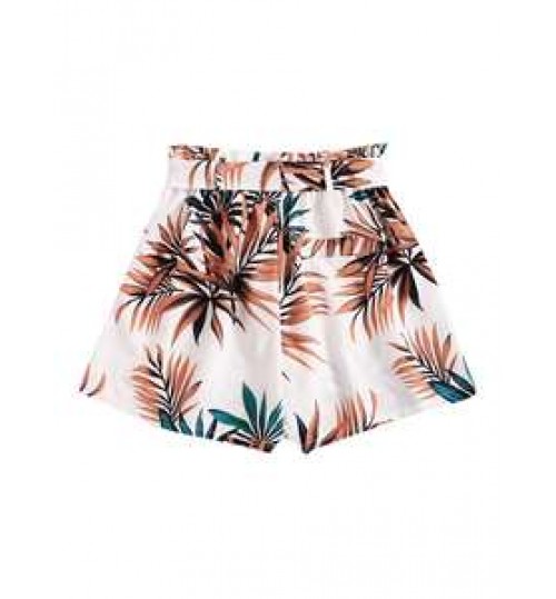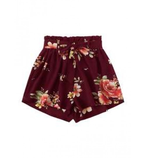 Women's Summer Shorts Women Boho Shorts Elastic Waist Loose Fit Casual Belted Wide Leg Plus Size Shorts With Flowers