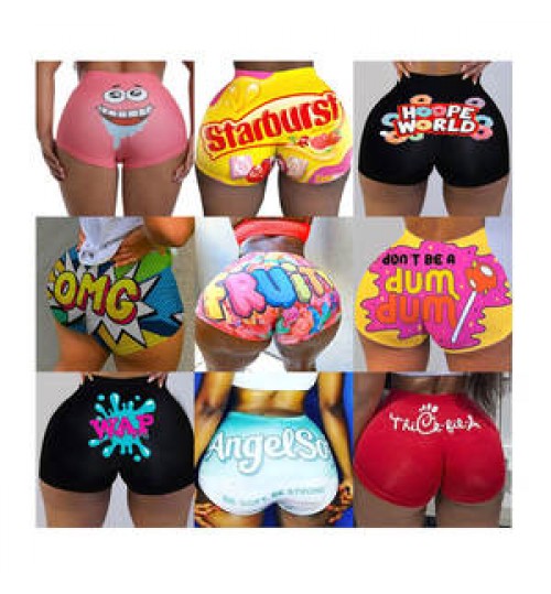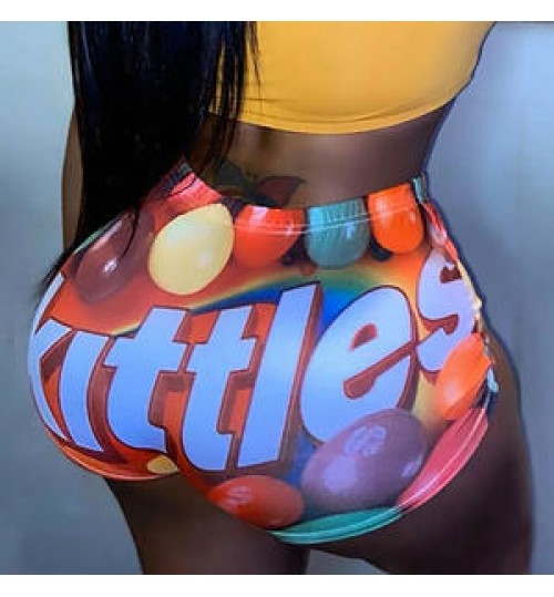 custom Label Logo Snack Gym Shorts Casual High Waist Wholesale Custom Candy Plus Size Booty Women'S Shorts