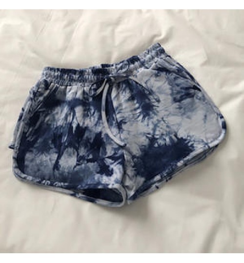 2022 New Fashion Women Girls Summer Beach Tie-dye Shorts Drawstring Elastic Waist Running Sports Short Pants Slim Casual Shorts