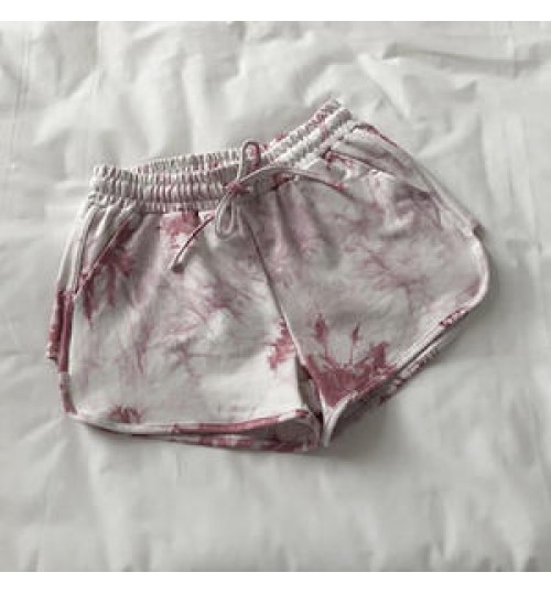• 2022 New Fashion Women Girls Summer Beach Tie-dye Shorts Drawstring Elastic Waist Running Sports Short Pants Slim Casual Shorts
