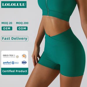 Cross Waist Gym Shorts Women'S Rib Soft Biker No T Line Yoga Pants Hot Sale