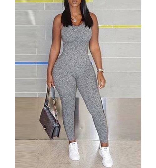 LW BASICS Casual U Neck Skinny Grey Jumpsuit