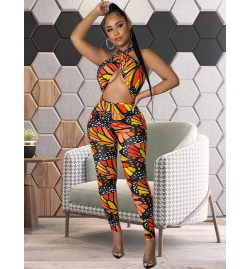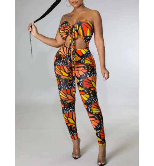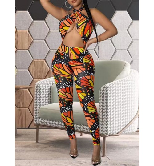 LW SXY Butterfly Print Bandage Cut Out Design Jumpsuit