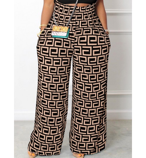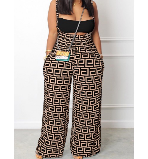 LW Geometric Print Wide Leg Overall Jumpsuit