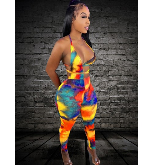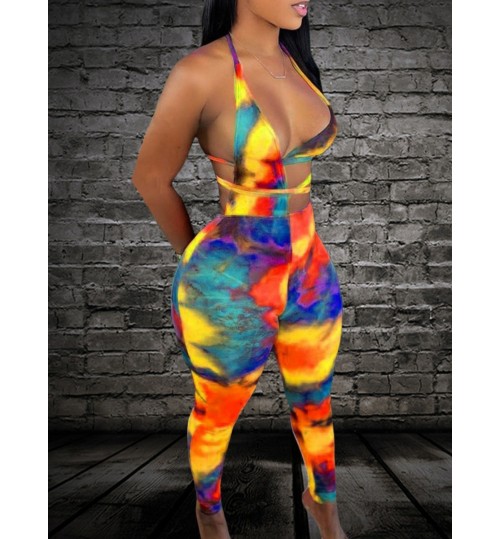 LW SXY Tie Dye Backless Bandage Design Jumpsuit