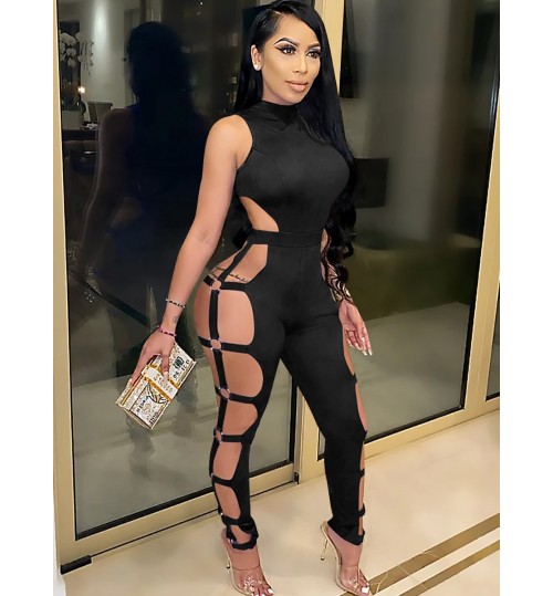 LW SXY Cut Out Metal Ring Decor Skinny Jumpsuit