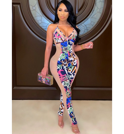 LW SXY Mixed Print See-through Jumpsuit