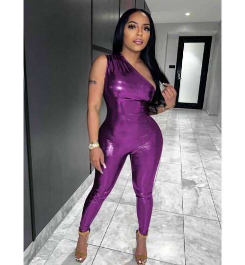LW SXY One Shoulder Shiny Skinny Jumpsuit