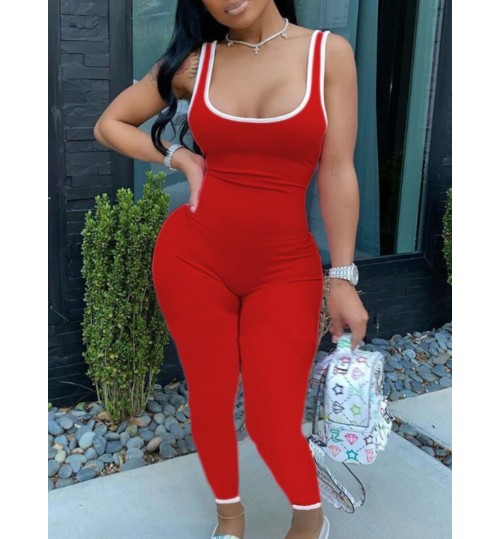 LW Sportswear Patchwork Red One-piece Jumpsuit
